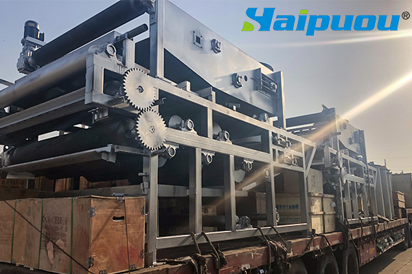 海普歐帶式壓濾機的構(gòu)造緊湊、式樣新穎、操作管理方便,處理能力大、濾餅含水率低,效果好。它與同類型設備相比,具有以下特點: