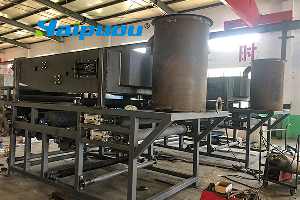 2、重力脫水段長,第一與第二重力脫水段總長5m多,使污泥在壓榨前充分脫水失去流動性。同時,重力脫水段還設置反轉(zhuǎn)等特殊機構(gòu),經(jīng)“楔”形、“S”形壓榨等作用使污泥濾餅獲得低的含水量。